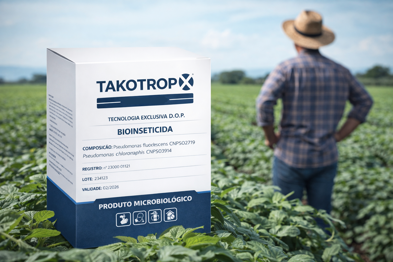 Takotrop® é um inseticida biológico elaborado com 2 cepas de bactérias, visando o combate/controle de diversas pragas. No WhatsApp, você informa cultura e praga e a gente orienta o melhor caminho de uso.